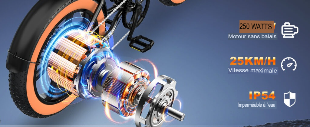 • Moteur brushless 250W pour des performances fluides et fiables.