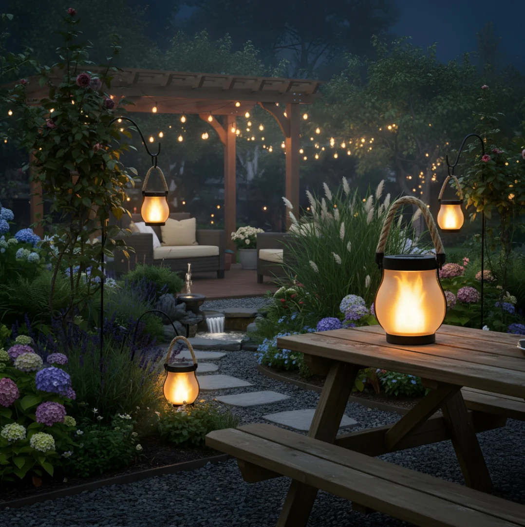 Transformez vos soirées d’automne et d’hiver en moments magiques. La lanterne SolFlamma™ diffuse une lumière chaude et vivante qui met en valeur votre jardin, votre terrasse ou votre balcon, en toute saison.